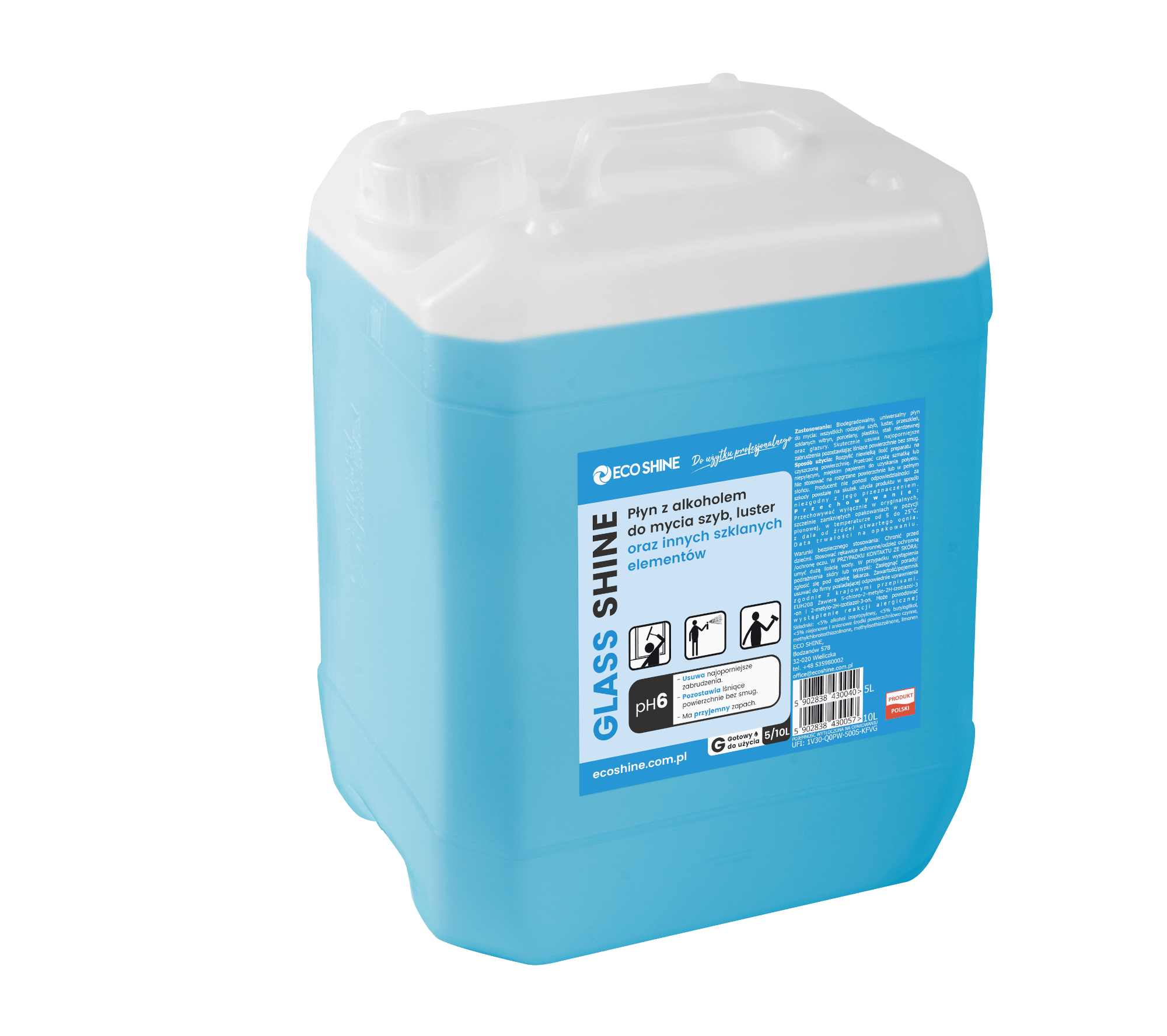 Eco Shine GLASS SHINE 5L Płyn z alkoholem do mycia szyb i luster