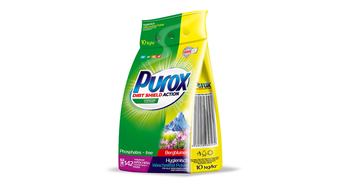 Proszek do prania kolorowych tkanin PUROX Universal 10 kg to uniwersalny środek skuteczny we wszystkich rodzajach prania - doskonały również do prania ręcznego Stworzony zgodnie z niemieckimi standardami jakości, to także wyjątkowo wydajny produkt, który wystarczy na dłużej.